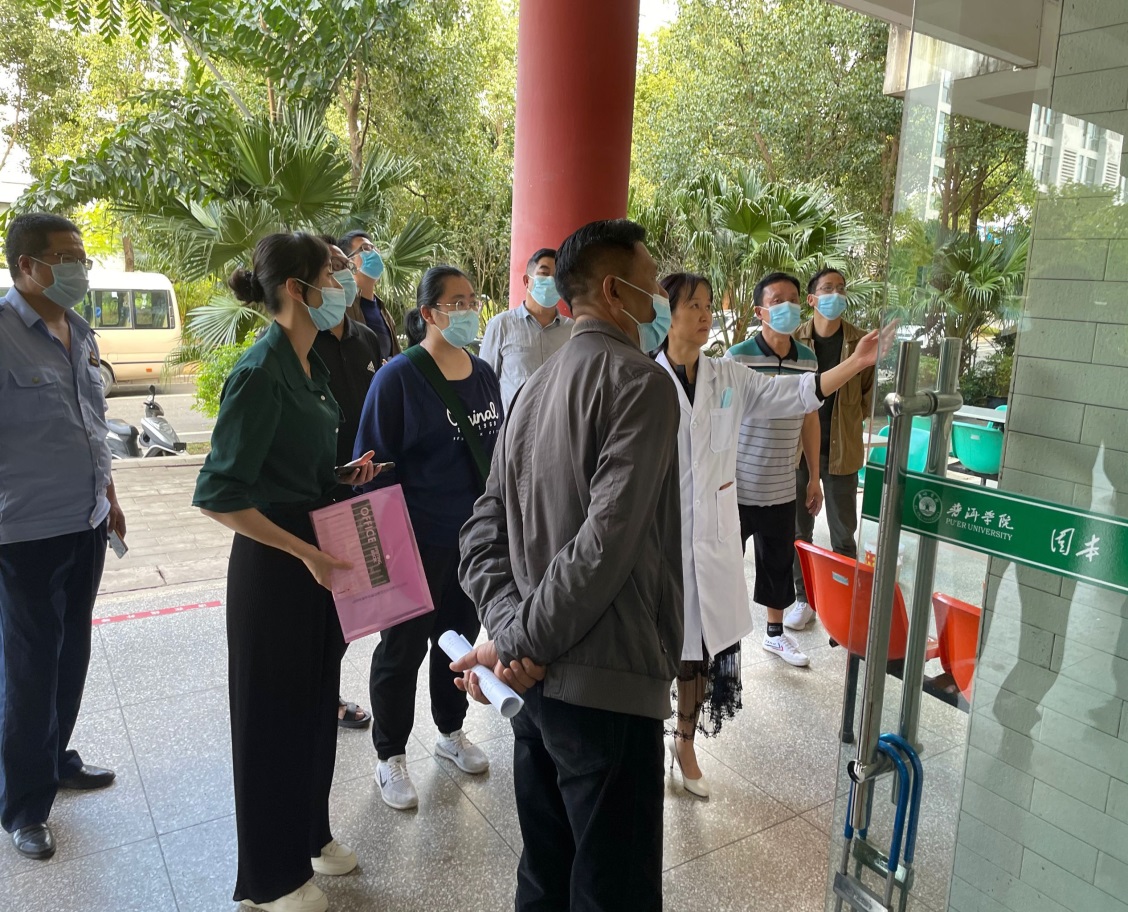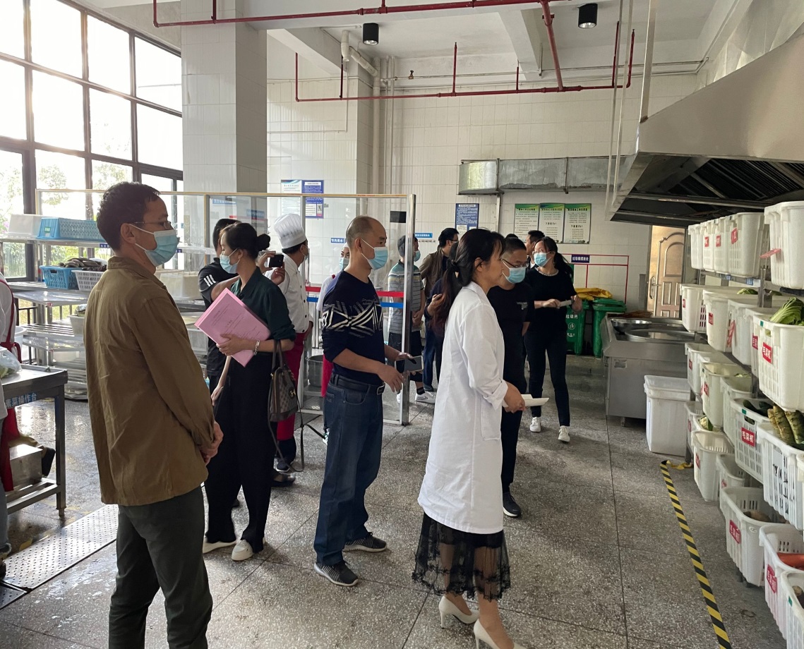 在东区食堂,后勤管理处饮食管理科科长陈礼梅向到场参观的各位领导介绍了食堂“六T”管理流程和取得的成果,过程中,参观人员还询问了食堂索证索票情况,查看了相关台账记录和仓库管理情况。