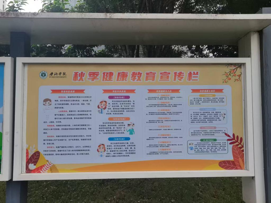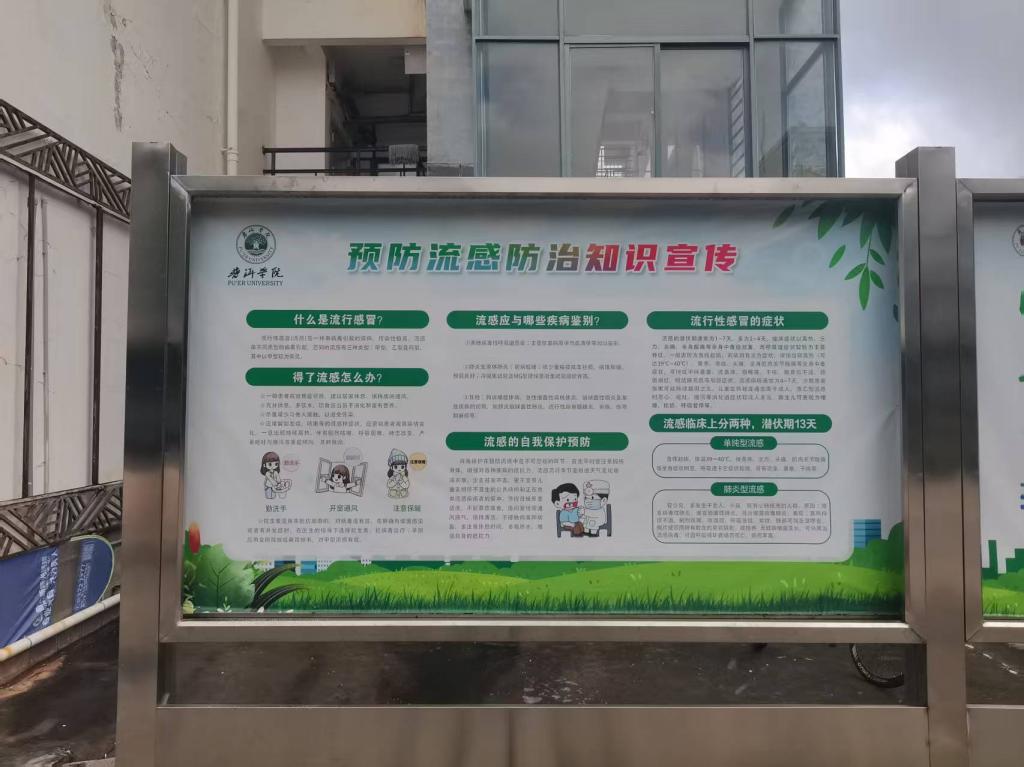 为增强师生的疾病预防意识,提升师生的健康素养和自我防护能力。后勤管理处精心策划并制作了六块宣传栏,内容涵盖秋季常见疾病的预防知识,以及肺结核、基孔肯雅热和流感等传染病的防范要点。
